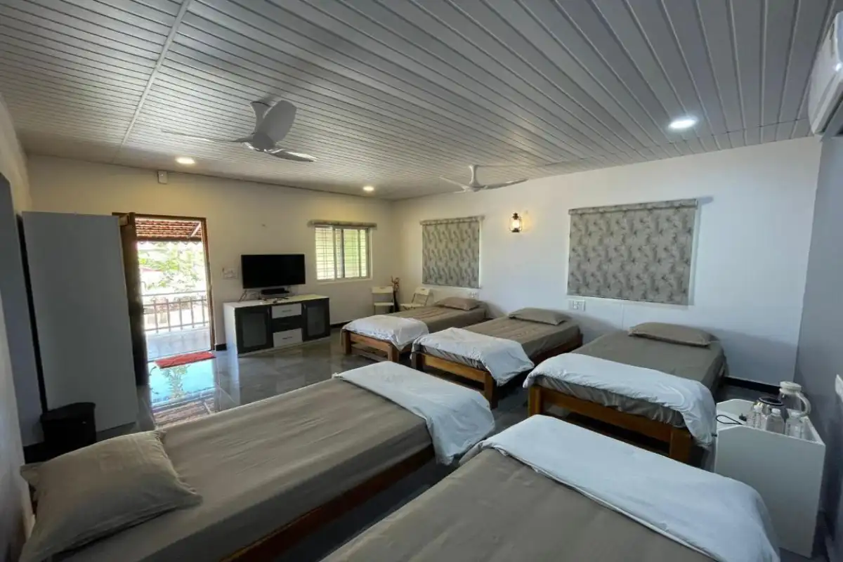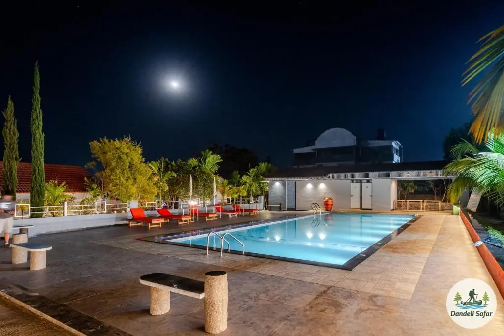 The B Hive is a family-run resort and converted farmstay located in the serene Londa area (Pintos Street, Dambar Factory Road, near Matharbai Temple), Karnataka. Situated just 1-1.2 km from Londa Junction Railway Station, the property offers convenient access for travelers arriving by train. The resort features a year-round outdoor swimming pool with poolside seating, spotless accommodations ranging from dormitory to deluxe cottages, and an on-site restaurant serving home-cooked meals with the flexibility to customize dishes. Guests consistently praise the friendly staff, cleanliness, peaceful ambiance, and safety for families and solo travelers. Located approximately 38-41 km from Dandeli Wildlife Sanctuary and adventure activities (rafting, kayaking, jungle treks), The B Hive serves as a convenient base for day trips. Note: Dandeli activities require separate booking and transportation arrangements (not included in stay packages). The property is pet-friendly (on request) and features open lawns, garden areas, games room with snooker, basketball court, badminton equipment, and outdoor fireplace for cozy evenings.